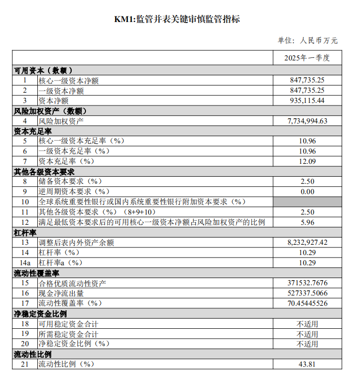 湖北金融租赁股份有限公司2025年第一季度第三支柱信息披露报告