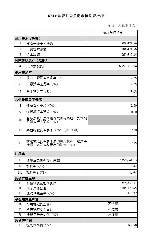 湖北金融租赁股份有限公司2025年第四季度第三支柱信息披露报告