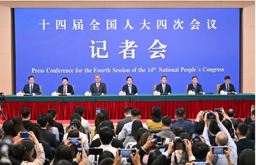 3月6日,十四届全国人大四次会议在北京梅地亚中心新闻发布厅举行记者会。国家发展和改革委员会主任郑栅洁、财政部部长蓝佛安、商务部部长王文涛、中国人民银行行长潘功胜、中国证券监督管理委员会主席吴清就发展改革、财政预算、商务、金融证券等相关问题回答中外记者提问。现场实录如下: